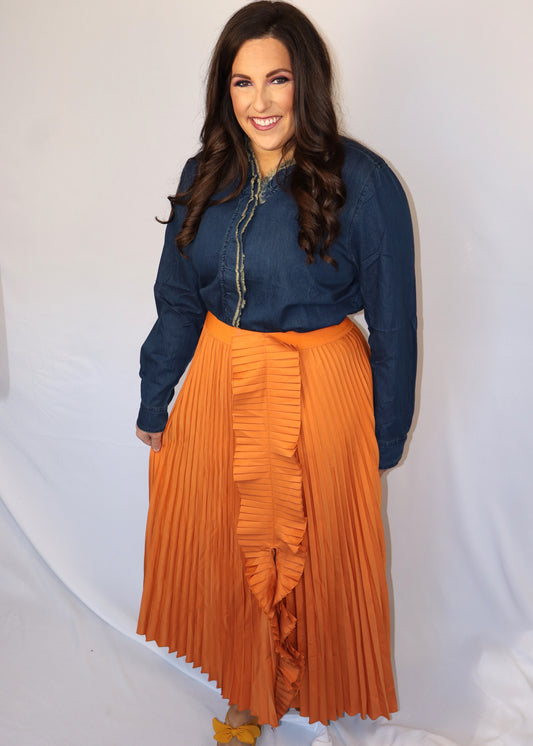 Pleaty Please? Maxi Skirt - Orange