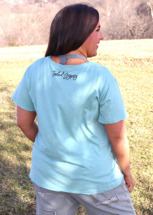 Moon Dance Solid V-Neck Tee - Mint