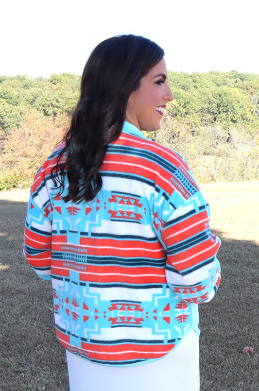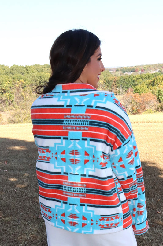 Aztec Soft Cozy Zip-Up Jacket - Aqua