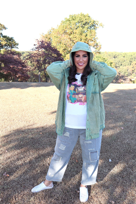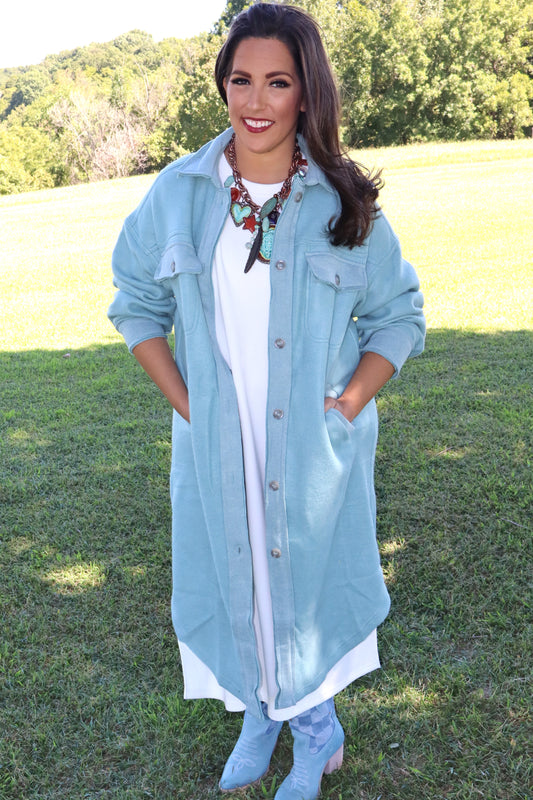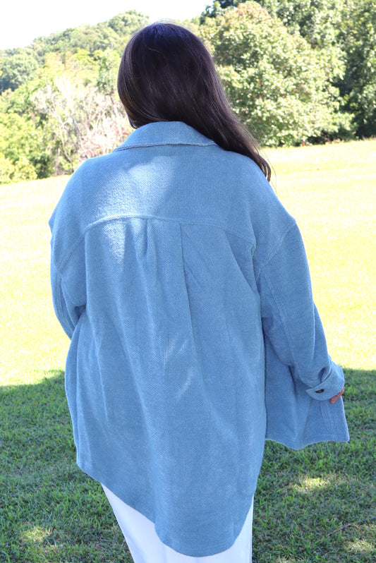 Bonfire With Friends Shirt Jacket - Dusty Blue