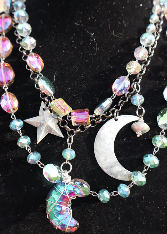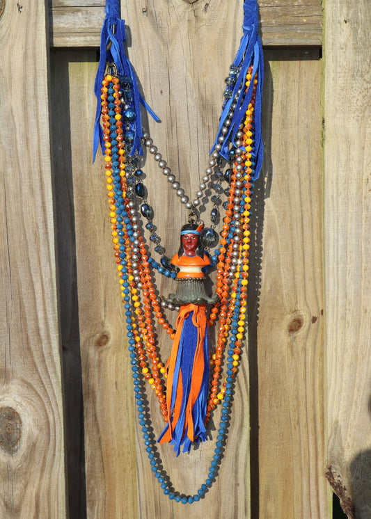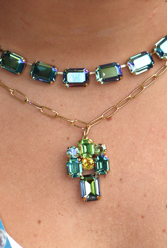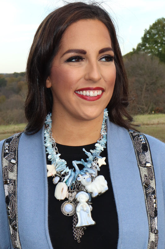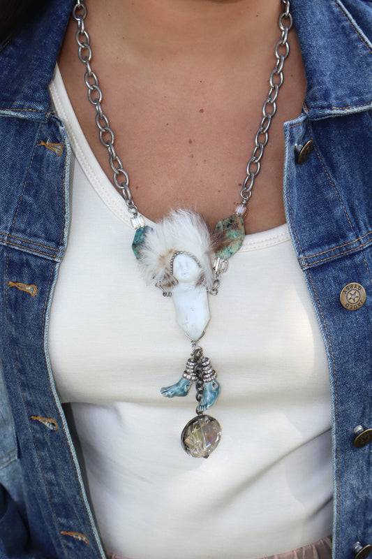Shiny Toggle Buffalo Nickel Necklace (2-sided) - Ice Blue