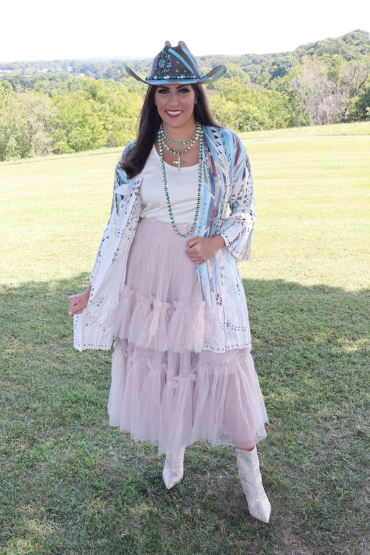 Cowgirl Boots Sequin Tulle Skirt - Cream