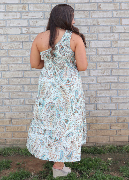 One shoulder Paisley Midi Dress - Mint