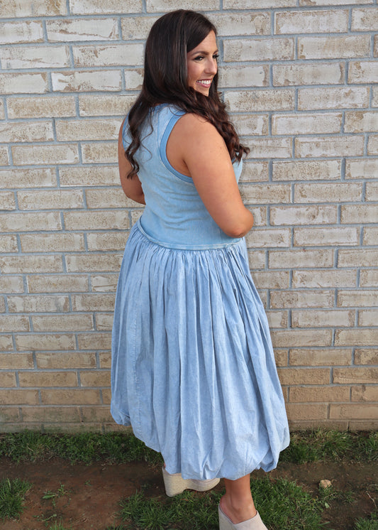 Sleeveless Balloon Skirt Dress - Light Blue