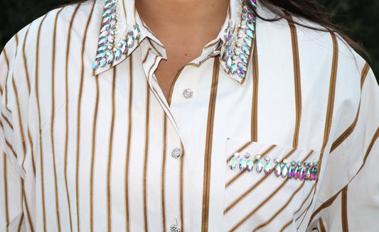 I Mean Business Button-Up - Gold Pinstripe