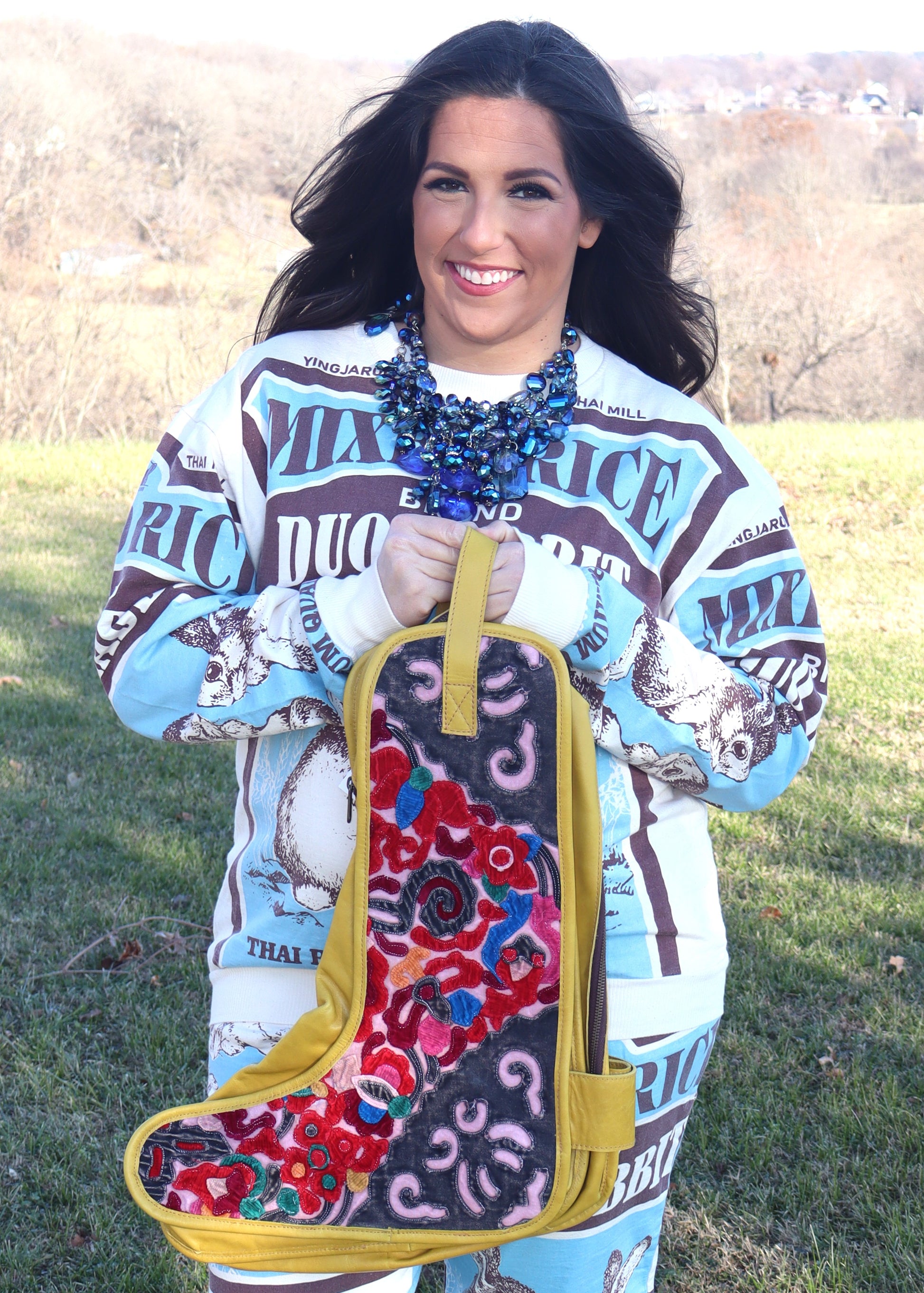 This adorable boot bag pairs perfectly with the Holly Leather Purse and the Olivia Duffel in either color (citrine and turquoise).