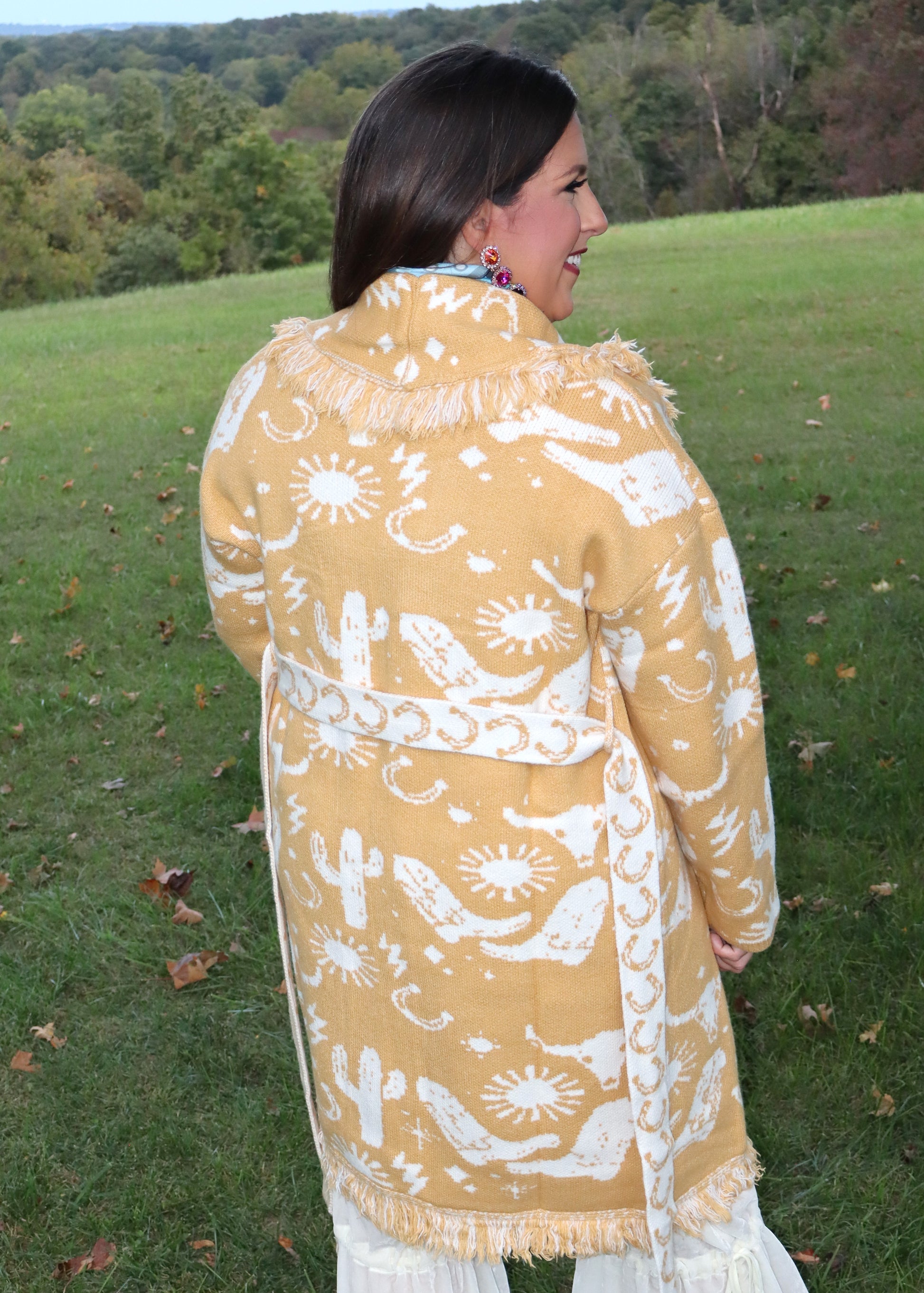 Campfire Cutie Western Fringe Cardigan - Mustard