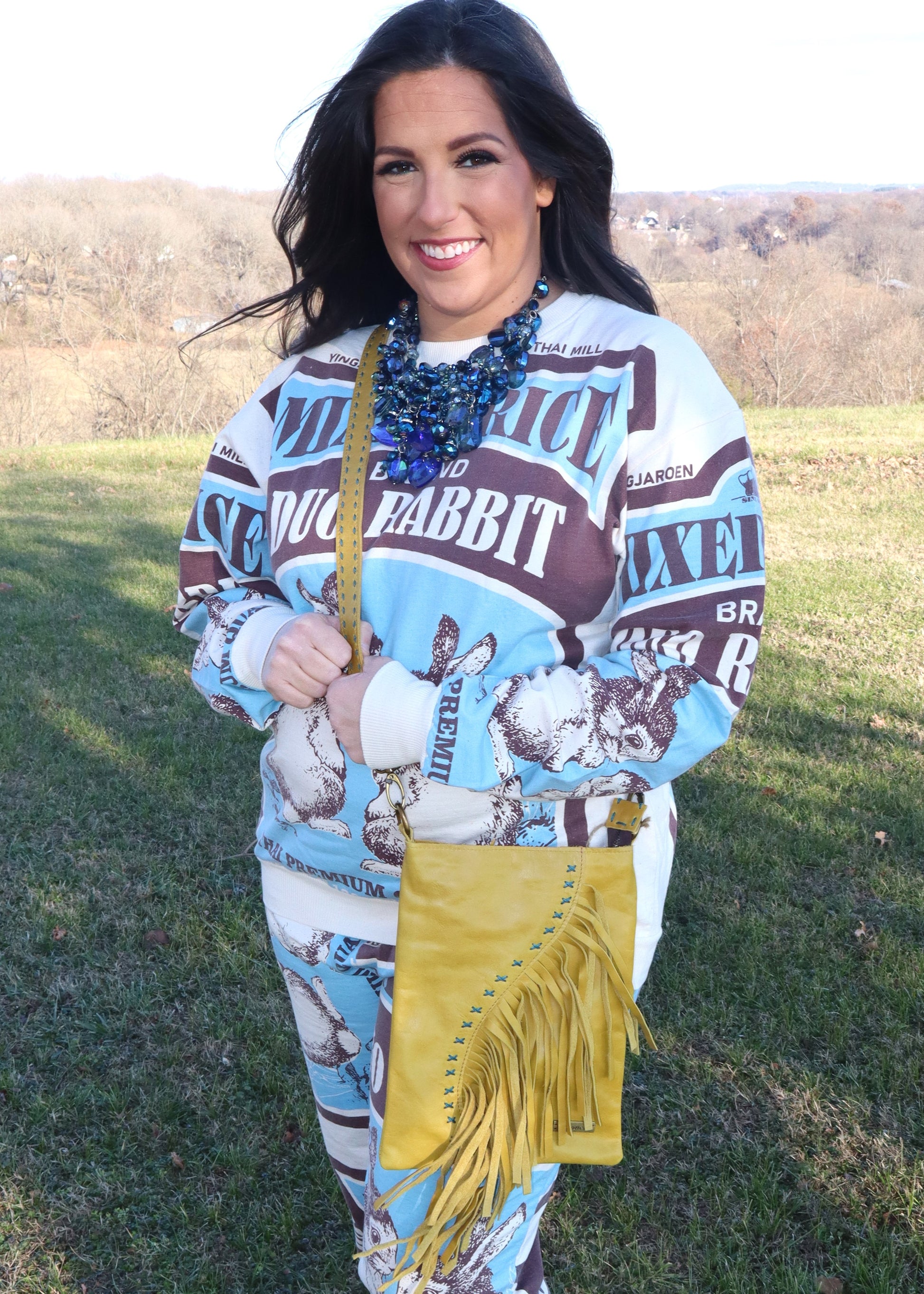 This purse matches and pairs perfectly with the Olivia Duffel and Brooklyn Boot Bag in both colors (citrine and turquoise).