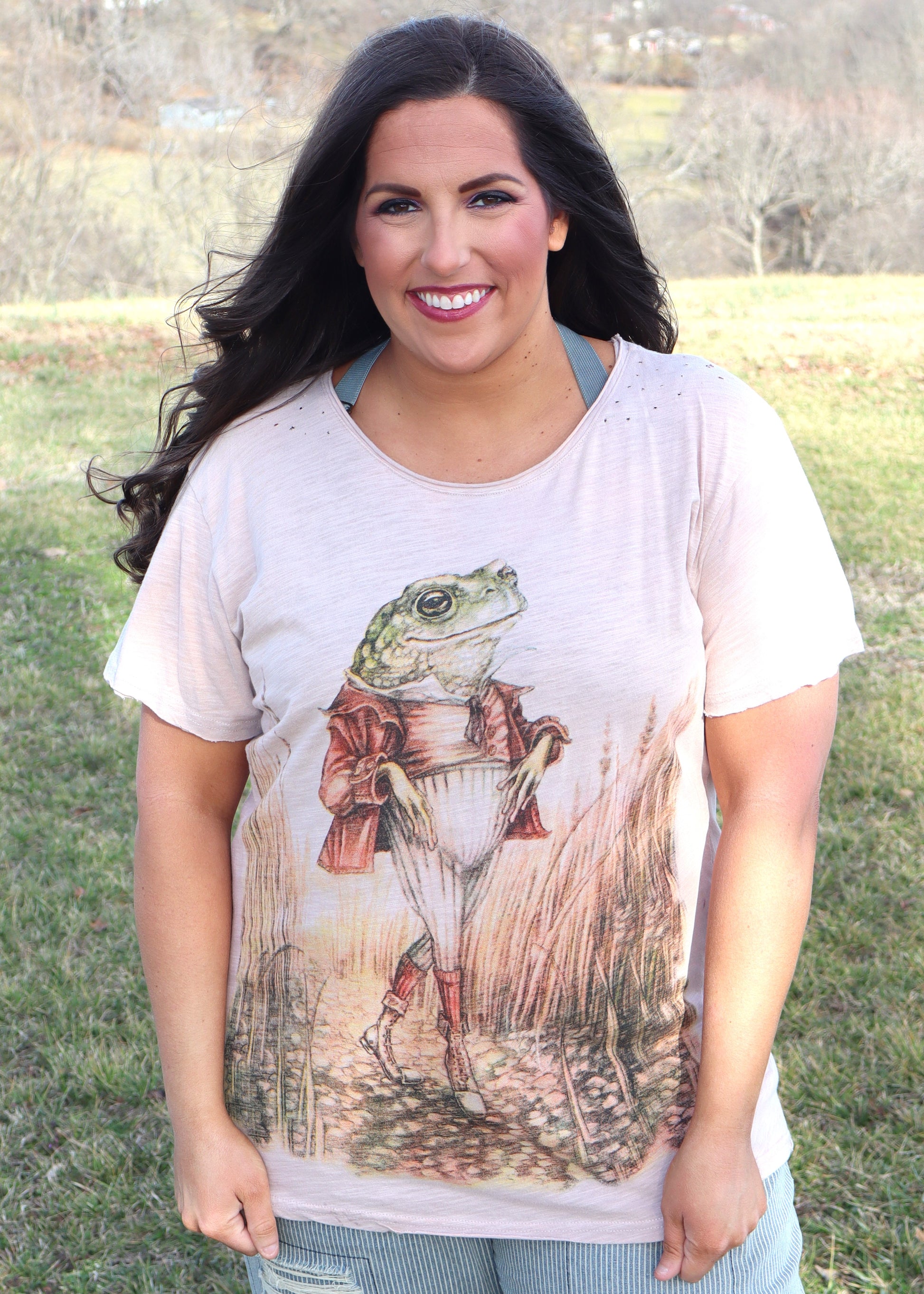 I don't know about you, but I am ready for a stroll with this cool frog! He can be worn casual or dressed up (like how Jennifer is photographed).