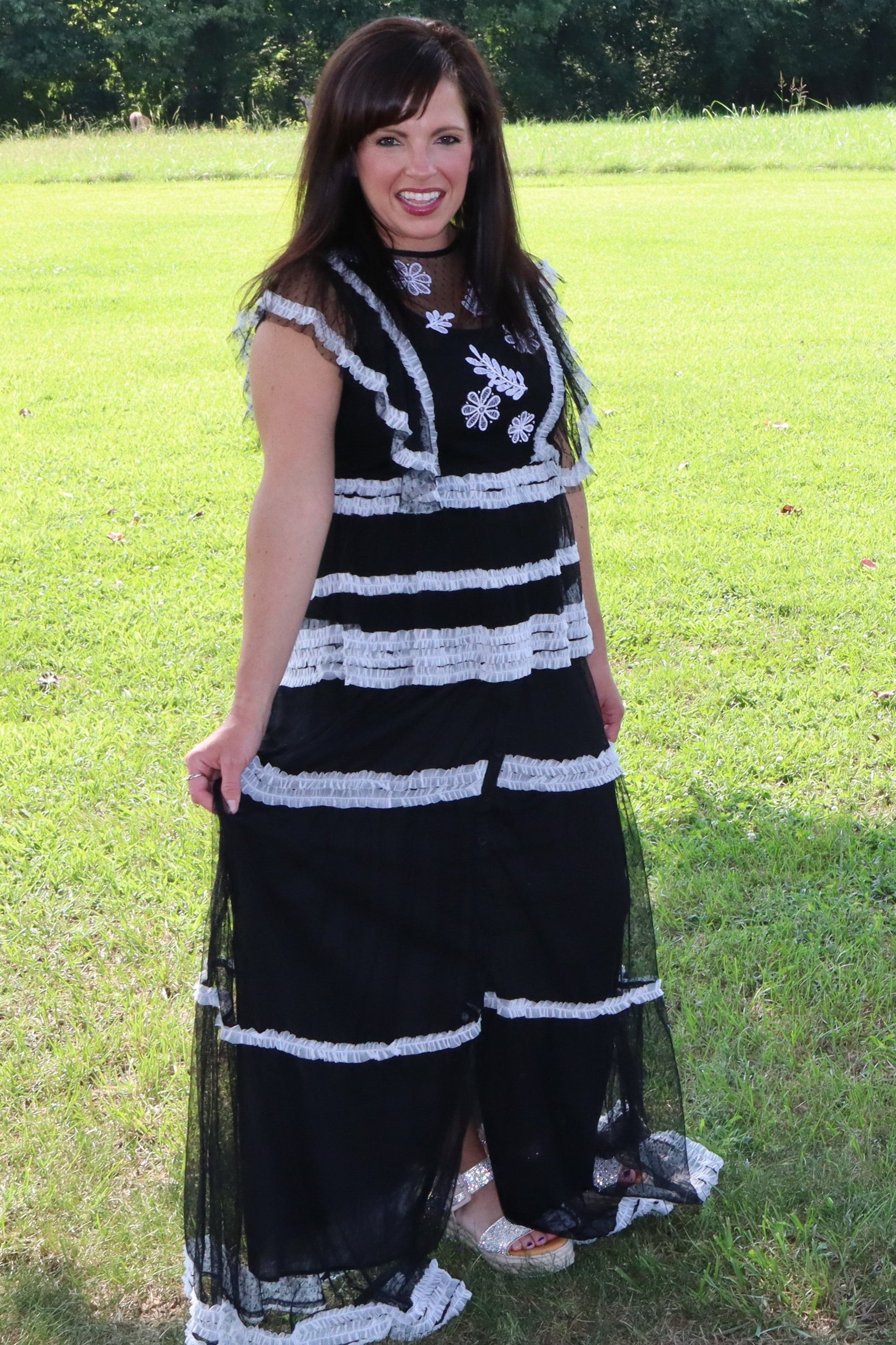 This vintage-inspired set will have you dreaming about a day at the park with your favorite Jane Austen novel. It will have you day-dreaming about being swept off your feet by the person of your dreams and riding off into the sunset in a horse drawn carriage. This set runs long in the skirt, so the taller ladies will have no issues with this being long enough to be a true maxi skirt. The shorter ladies will need to have the skirt hemmed or simply enjoy the romantic moment of an extra long skirt for photos in the park running around barefoot for a more carefree moment. The top comes with a built in tank top. I prefer tank tops with some stretch, so I preferred to pair it with my Basic Tank Top in black which you can find under our Back To The Basics tab.