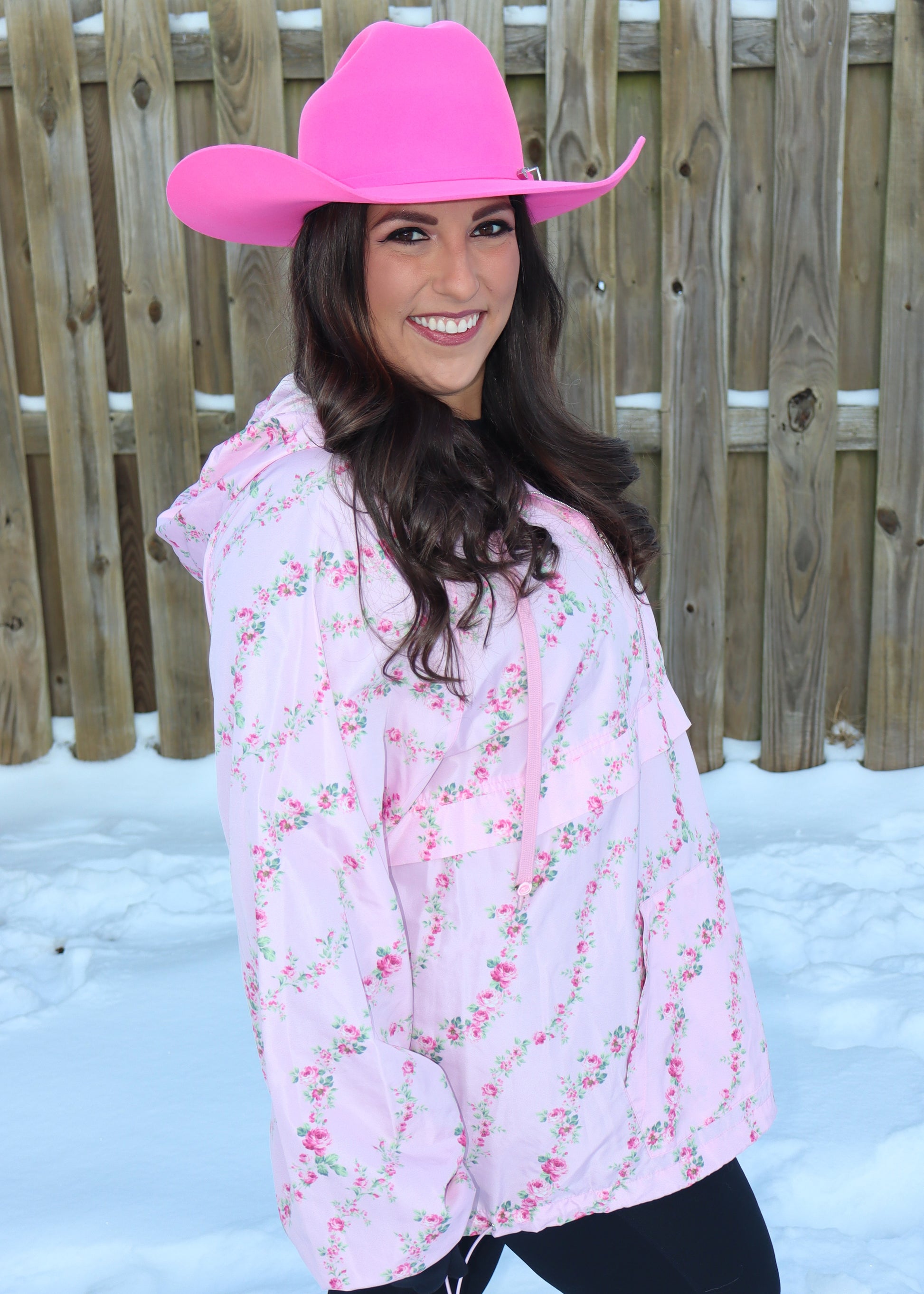 Don't let the wind stop you from having a super cute outfit! This windbreaker is great for all ages with the sweetest rose print!