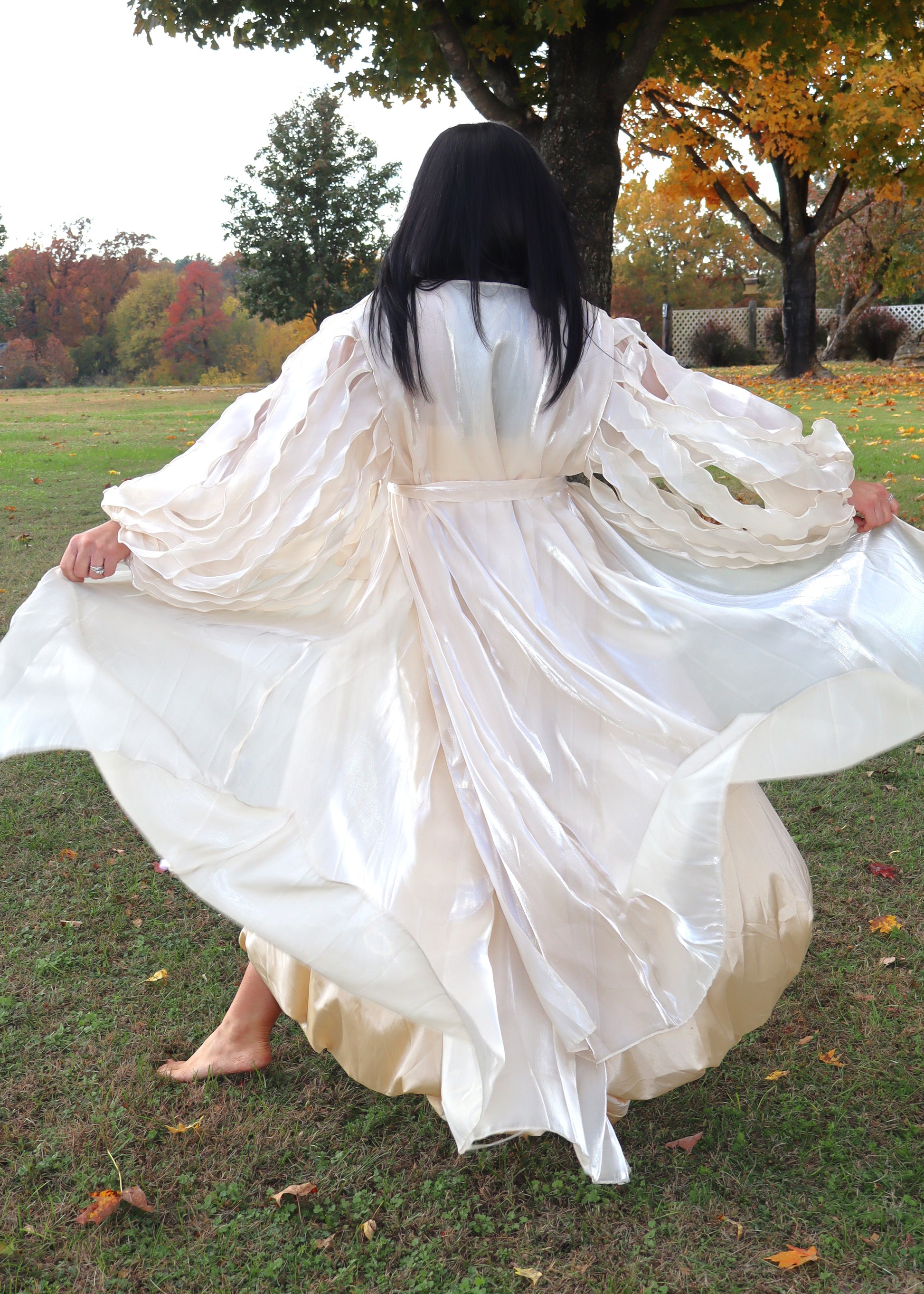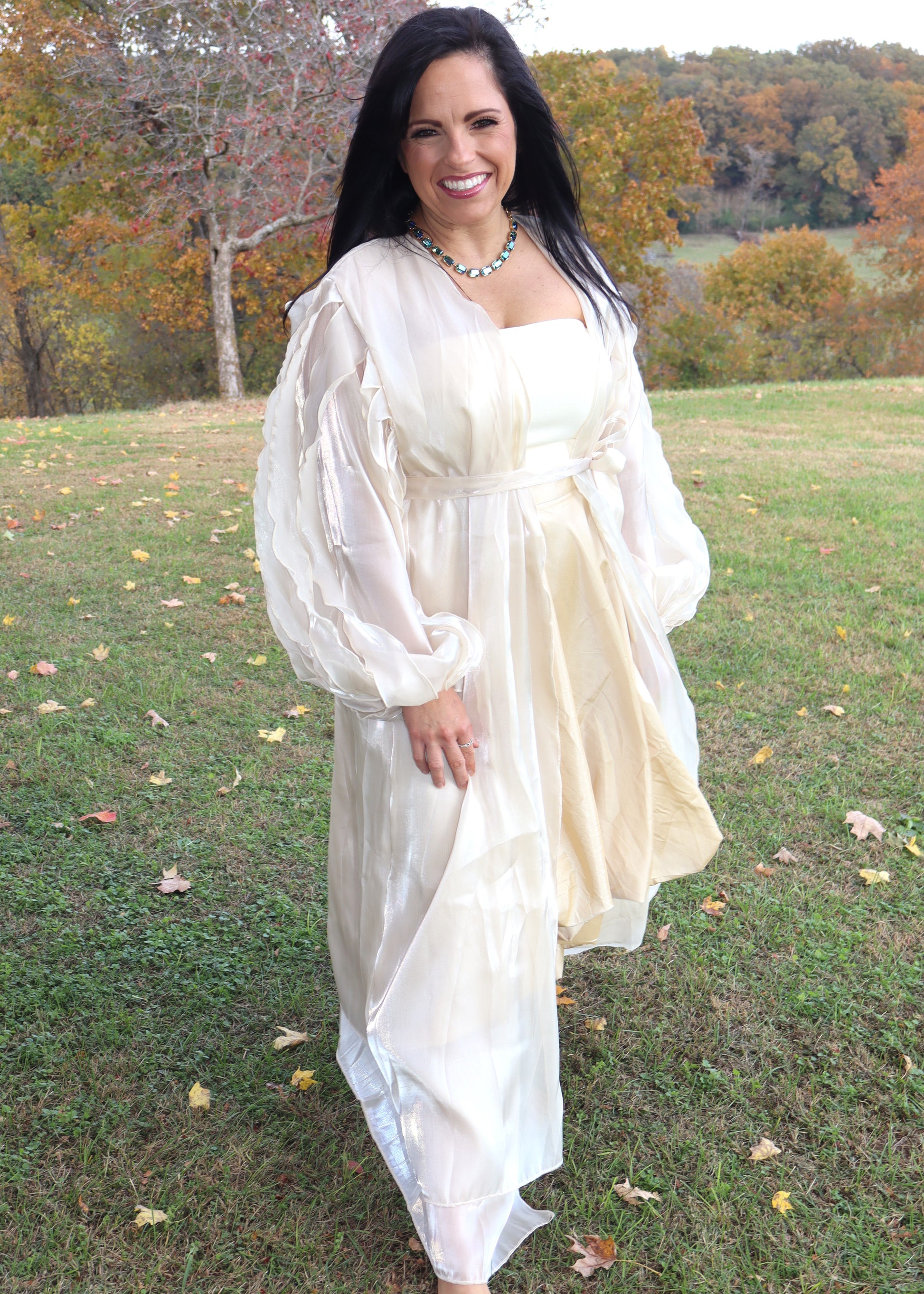 You will feel like an absolute goddess in (champagne) gold when you wear this duster! It is perfect for the holiday season and can be worn for many years to come.