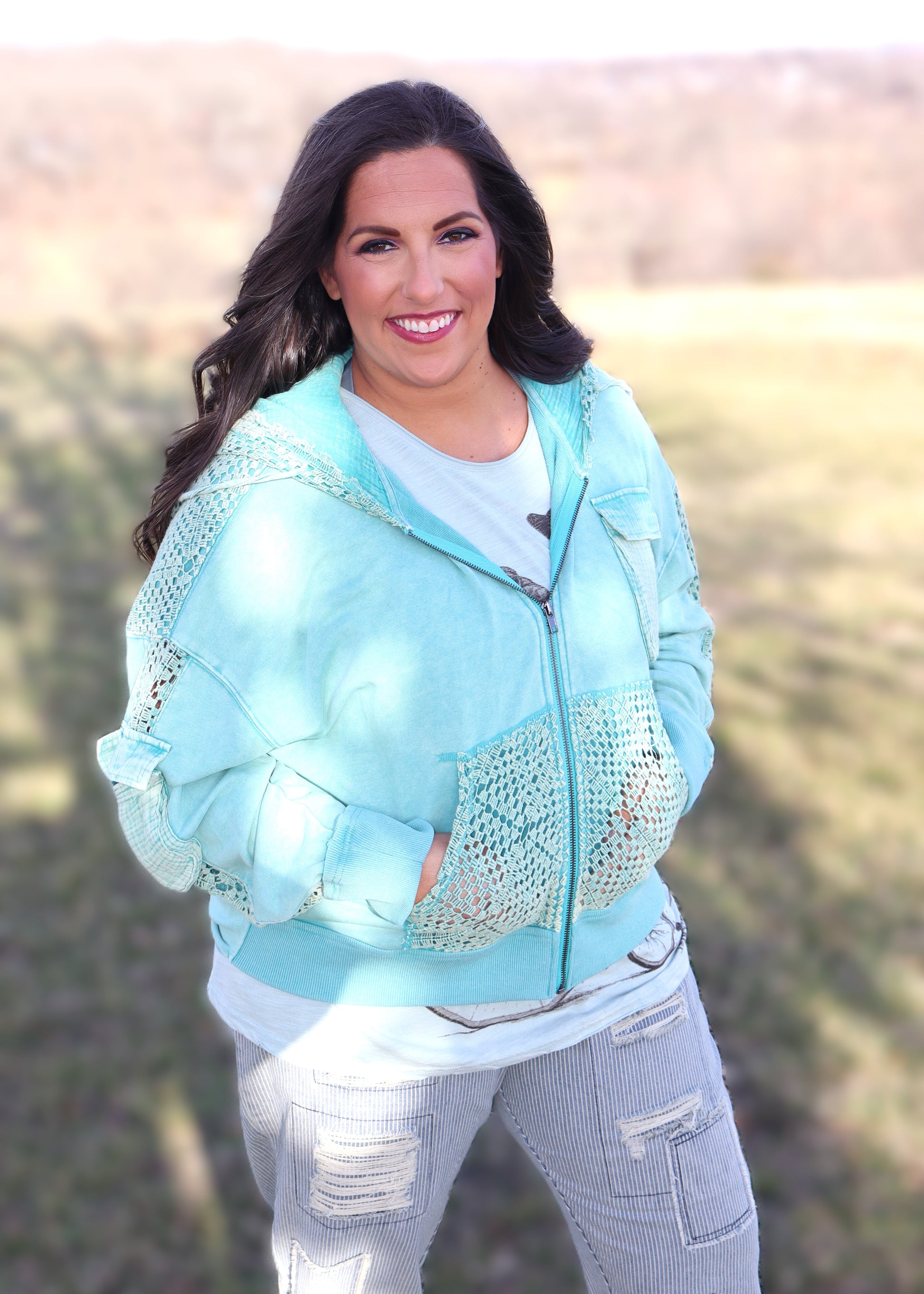 We all need that grab and go zip up jacket that we can wear with leggings, but this one is even better because you can wear it with leggings OR a skirt for a dressier casual look without jeopardizing on the comfort!