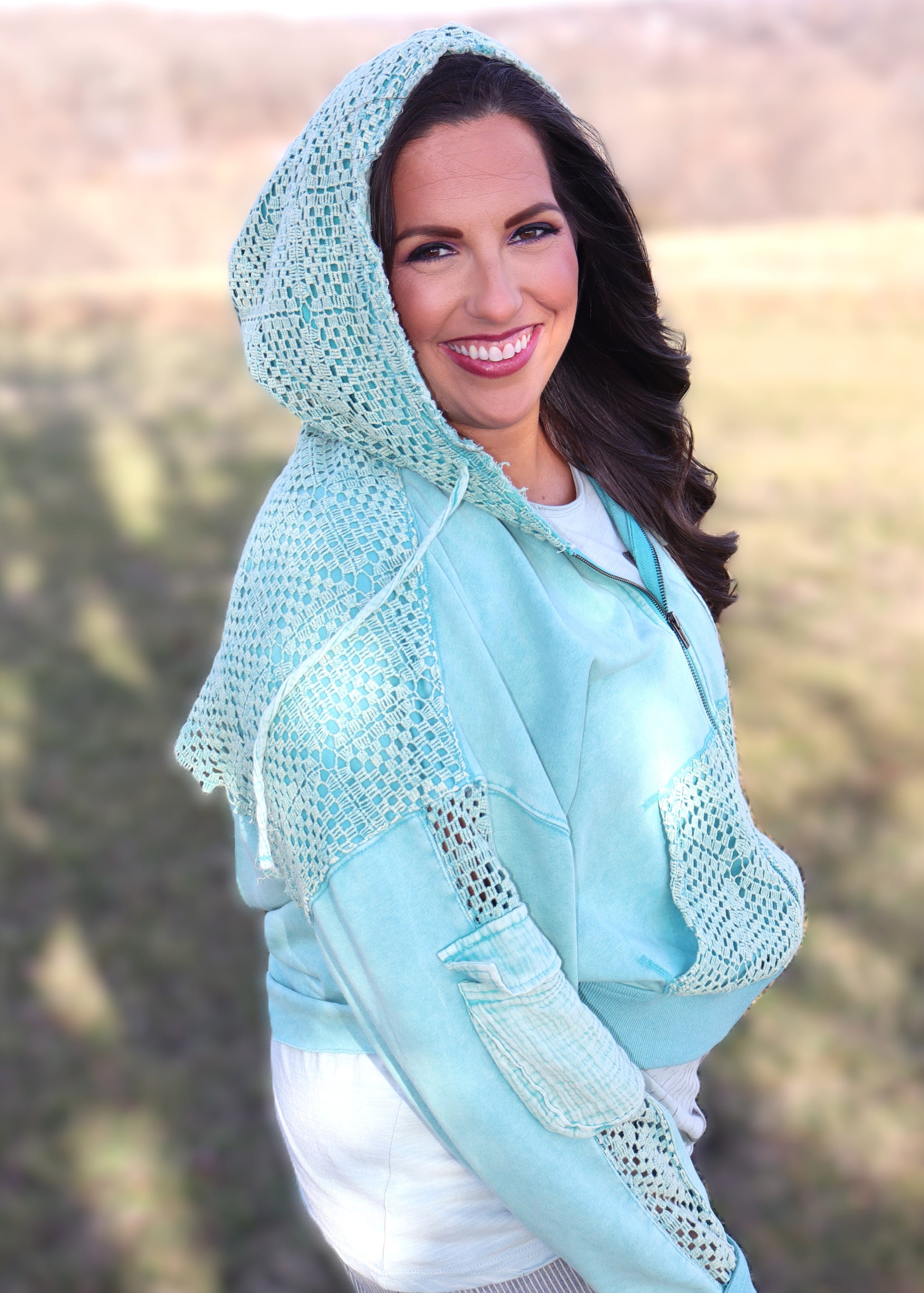 Washed Back Twist Hoodie Zip Up - Mint